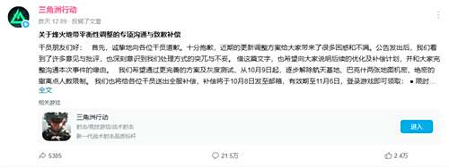 面对汹涌的舆论压力,项目组于10月8日发布致歉公告,承认更新“处理方式突兀与不妥”,并宣布从10月9日起逐步解除航天基地、巴克什两张地图的撤离点人数限制。这一事件再次将游戏设计中公平性与趣味性的平衡问题推到了聚光灯下。