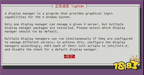 2、执行sudo apt install lightdm时出现的选择,按下回车键确定,上下键进行选择