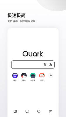 夸克,不仅是追求极简理念,更是极速智能的搜索,对极速、极简界面和去广告极度洁癖者的骄傲和追求。