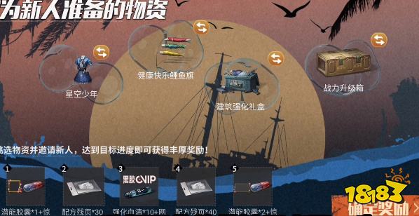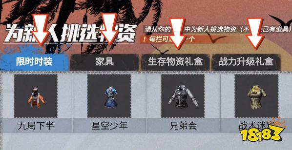 2、玩家一共一个选择四种:限时时装、家具、生存物资礼盒、战力升级礼盒。(时装不是永久的,建议兑换星空少年)