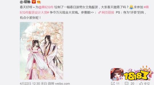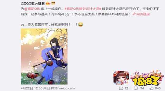 自4月22日《熹妃Q传》×半次元服装设计大赏开幕以来,收到了各种来自热情粉丝与玩家们的投稿,活动一时间异常火爆。现金、定制周边等超值大奖等你来拿,还有机会能为自己喜爱的角色设计一套美美的服装并出现在游戏内,怎能不让人心潮澎湃!无论你是否擅长绘画、设计,即刻变身服装设计大师,加入到这场角逐之中吧!