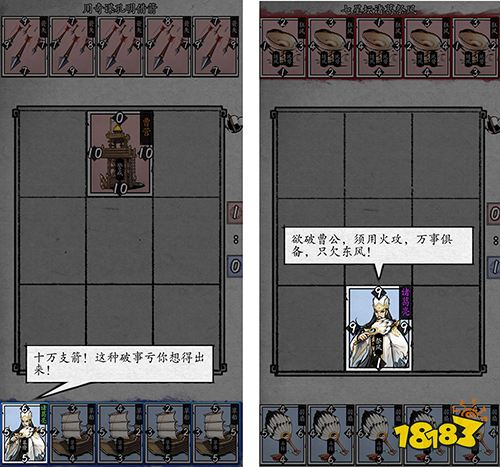 除了多种武将人物卡牌的还原,演义模式中还根据剧情需要还原了各种道具、技能卡牌。比如三国中著名的赤壁之战。在《三国演义》中,说到赤壁之战的亮点,就不得不提诸葛孔明的草船借箭跟借东风。在演义模式中,这两个剧情也得到了完美的再现。“用奇谋孔明借箭”中,玩家将用孔明带着草船牌组对战NPC的箭矢牌组。而在“七星坛诸葛祭风”中,玩家将用孔明的的羽扇对战NPC的旋风,直到所有风向都变成东南风,玩家才能获得最终胜利。