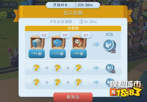 需要注意的,每班货运卡车在出口总部只会停留一段时间,在此期间,玩家要尽快筹集商品并装箱发货。而若当前的货运任务难度较高,玩家也可以通过任务界面中的“新货运”按钮,来刷新货运任务。