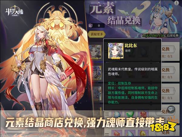 拟态试炼中积攒的元素结晶在商店中兑换传说级别的魂师,如玩家们梦寐以求的比比东、波赛西都是可以兑换。