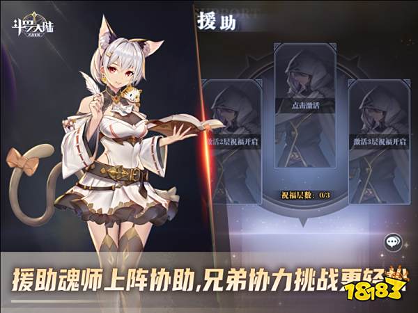 祝福援助则是由系统给你指派一名符合你实力的魂师帮助作战,不过需要100钻石,在前期战力足够应付的时候,可以暂时不选择祝福援助。
